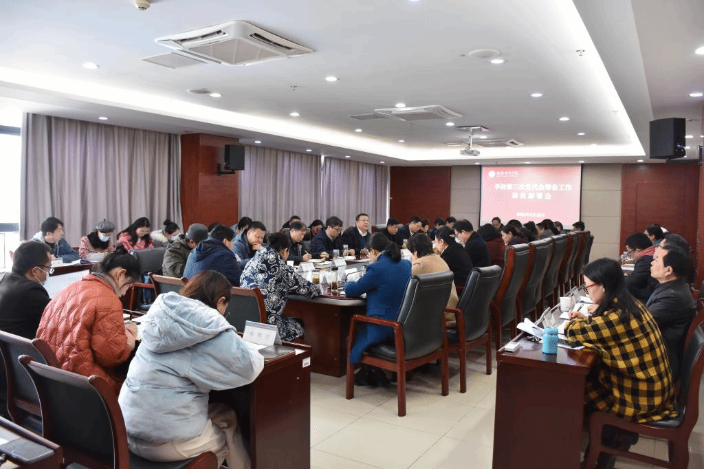 本网讯 2月25日上午,学院在锦绣校区第二会议室召开第三次党代会筹备工作部署会。党委书记徐成钢作部署讲话,党委副书记吴昕春主持会议,党代会各筹备工作组及相关部门负责人、各二级党组织书记、专职副书记、党建组织员、党务秘书参加会议。