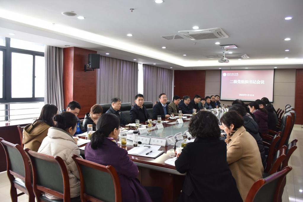本网讯 1月11日上午,学院在锦绣校区行知楼第二会议室召开二级党组织书记会议,部署党的二十大代表推荐工作,布置近期基层党建和思想政治工作。院党委书记徐成钢,党委副书记吴昕春,纪委书记徐文林出席会议,各二级党组织书记、专职副书记,组织部、办公室、纪委办、宣传部、团委、学生工作部、保卫处等部门负责人参加会议。