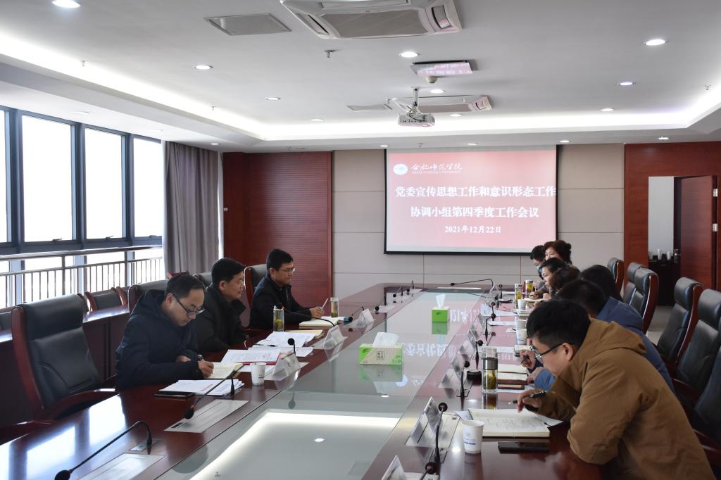 本网讯 12月22日上午,学院在行知楼第二会议室召开党委宣传思想工作和意识形态工作协调小组第四季度工作会议。党委副书记吴昕春主持会议并讲话,学院党委宣传思想工作和意识形态工作协调小组成员单位负责人参加会议。