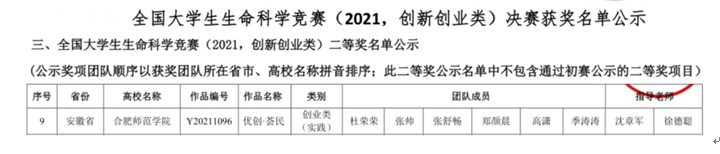 学院高度重视本次比赛,生命科学学院积极动员部署,组织遴选项目,在大学生生命科学竞赛安徽赛区初赛中荣获省级一等奖1项,二等奖4项,三等奖4项。