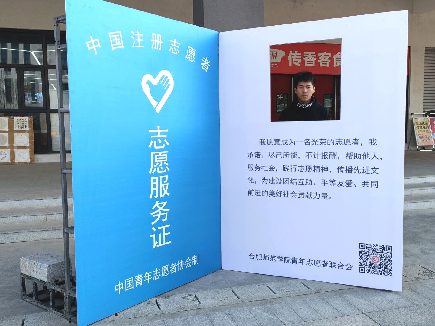 活动当天,青志联在滨湖校区开展志愿服务文化展活动,以展板海报形式展出各二级学院的品牌志愿活动,同时组织同学参加主题横幅签名、“志愿证上你和我”展板合影、“志愿服务我想说”志愿树留言祝福等一系列活动。志愿者们齐聚一堂,回忆参与志愿服务的经历,在便签上书写在志愿服务过程中实现人生价值的畅想和心得,表达对学院青年志愿服务事业发展的美好祝愿。