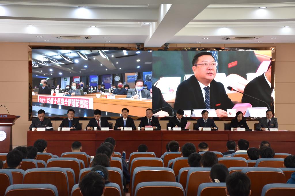 本网讯 11月24日,2021年皖台大学生“徽文化”研学营在我院和铭传大学两个分会场成功举行。本次研学营由安徽省人民政府台湾事务办公室、beat365唯一官方网站和铭传大学主办,院港澳台事务办公室、刘铭传学院和肥西县海峡两岸交流基地刘铭传故居承办。研学营以“皖台大学生体验徽文化共续铭传情——铭传亲缘肥西行”为主题,采用“线上+线下”的模式,通过网络连线,在两个分会场同步举行。