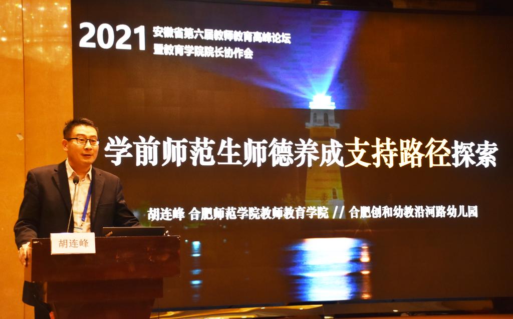 学院认真落实“立德树人”根本任务,倾心探索小学教育和学前教育等师范专业的人才培养路径,教师教育学院学前专业负责人胡连峰副教授在会上交流了“学前师范生师德养成支持路径探索”,受到大家的关注和好评。本次论坛的成功举办,也为学院教师教育改革创新工作提供了有力的理论支撑和实践经验。(教师教育学院:吴姗姗)