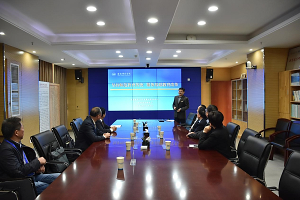 徐成钢代表学院致辞。他代表学院对专家组的现场考查和指导表示热烈欢迎,对安徽省教育评估中心对我院认证工作的指导和帮助表示衷心感谢,并从三个方面对我院师范专业建设情况进行简要介绍。一是建设行知文化,引领师范专业建设。立足习近平总书记“四有好老师”等重要论述及党的教育方针与陶行知教育思想内涵上高度一致,立足“师范性、应用型”办学定位,坚持把“学习陶行知、师承陶行知”作为校园文化建设主线,建立行知文化“六进”机制,以行知文化引领应用型办学育人和师范专业建设。二是实施“六位一体”,赋能师范专业建设。系统谋划和实施培养、培训、研究、指导、资政、服务“六位一体”教师教育发展新模式,全面推动师范类专业国家认证,构建三级卓越教师培养计划。三是突出产出导向,深化师范专业建设。构建能力培养全程化、与地方政府两方合作、三线协同的师范人才培养模式,对标师范专业认证标准、制定强化实践教学体系的教师教育专业人才培养方案,深入实行“U-G-S”协同培养机制。