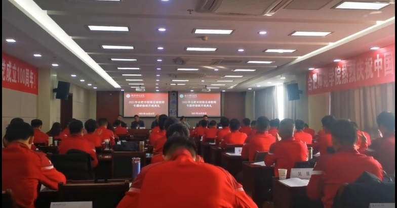 最后,杜文龙向参训学员详细介绍了合肥足球学院的发展历程。他指出,合肥足球学院作为安徽省首个高校足球学院,填补了华东地区高校没有足球学院的空白,致力于培养专精化的足球教师、教练员、裁判员和管理人员,组建代表安徽足球的高水平足球队伍,促进竞技水平提升,对于合肥市校园足球的发展也有着不可推卸的责任。他表示,学院培训管理团队将在合肥市教育局和继续教育学院的指导下,竭力为学员学习生活做好服务保障。