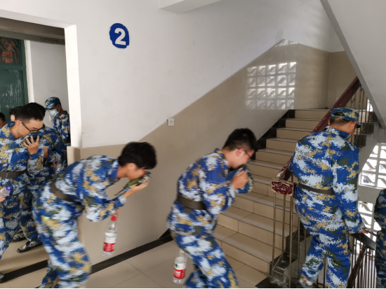 演练前,保卫处向全体教官讲解了应急疏散演练的工作流程,强调了疏散指挥过程中的注意事项,说明并演示了各类灭火器的使用方法。新生在教官的指导下,认真学习了消防安全意识和逃生技能。