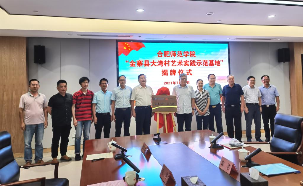 本网讯 为深入贯彻习近平总书记考察安徽重要讲话精神,深入开展党史学习教育,深化学院与地方政府合作关系,助力乡村振兴和产业发展,7月28日,我院与金寨县人民政府在金寨干部学院举行“beat365唯一官方网站金寨县大湾村艺术实践示范基地”揭牌仪式。我院党委书记徐成钢,金寨县委书记汪冬出席揭牌仪式。金寨县经济技术开发区、教育局、花石乡等单位主要负责人以及学院宣传部、教务处、艺术传媒学院等负责同志参加揭牌仪式。仪式由金寨县委副书记朱健主持。