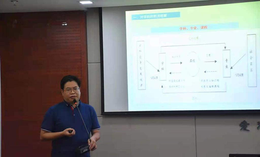 会上,方明首先围绕学科、专业、课程的相互关系,揭示了学科建设应坚持“学科、专业、学位点、人才、平台”五位一体协同推进的理念,并就当前学科发展的阶段性特征,提出了一流学科的建设标准。接着,结合省属高校博士硕士学位授予及第四轮学科评估情况对我省学科建设概况作了宏观分析。最后,围绕硕士学位授予单位及授权点申请基本条件,结合我院申硕及学科建设工作,从分析现状、目标定位、凝练方向、找出差距四个方面提出了建设思路,并结合大量详实的数据和生动的实例,从党的建设、人才团队、科学研究、社会服务、开放办学、体制创新、评价制度、统筹协调八个方面,提出了具体举措。方明指出,学科建设是本科院校建设的核心,要以目标为导向,坚持一流标准;以需求为导向,坚持服务地方;以问题为导向,完善学科体系;以改革为动力,坚持创新发展。在互动环节,方明同在场教师进行了讨论和交流。