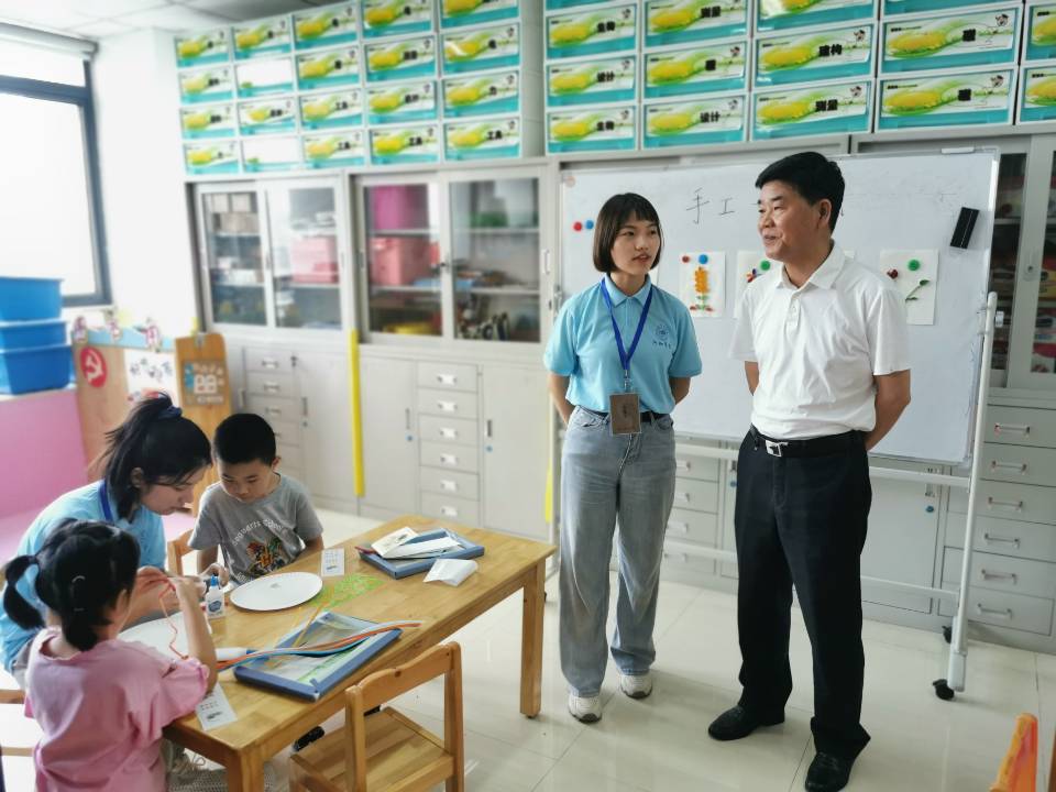 7月14日下午,院党委副书记吴昕春在院工会、团委、教师教育学院等相关负责人的陪同下,前往锦绣校区行知楼学前教育实训中心看望了第二期“教工之家”行知学堂的小先生和小学员们。