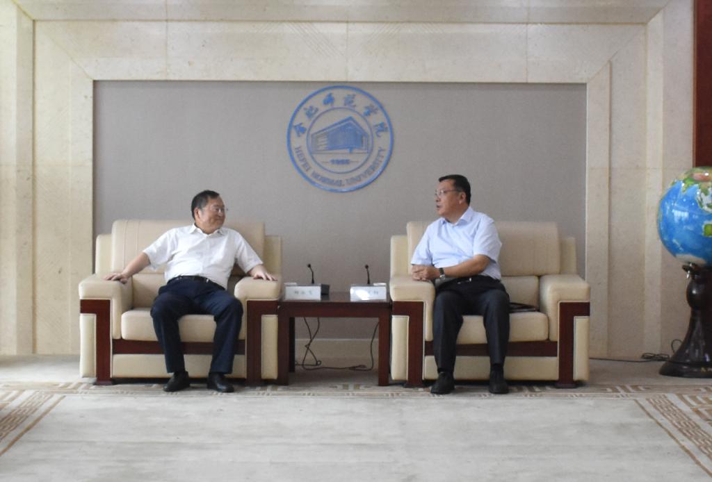会前,在组织部、统战部、办公室等部门负责人陪同下,院党委书记徐成钢在接待室接待了郑永飞一行,对调研组一行的到来表示热烈的欢迎。徐成钢介绍了学院的办学历程和基本情况,特别是近年来学院坚定地方性、应用型办学定位,坚持举行知旗、走应用路、创师范牌的特色发展之路,地方应用型高水平大学建设取得积极进展。徐成钢表示,学院党委高度重视统战工作和民主党派建设,采取有力措施,积极构建大统战工作格局。他指出,近年来民盟合师支部在民盟安徽省委的重视、关心和指导下,努力加强自身建设,积极建言献策,为学校的改革、建设和发展作出积极的贡献,真诚期待调研组一行对我院的发展多提指导意见。