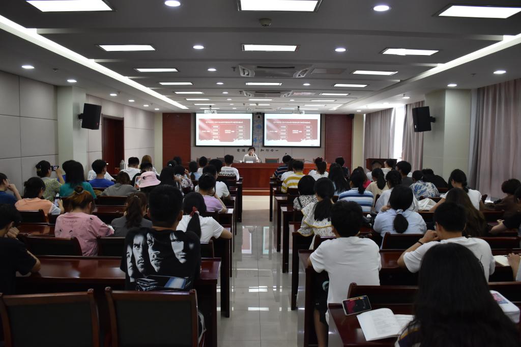 本网讯 6月11日,学院第十二期青年马克思主义者培养工程班在锦绣校区行知楼2011教室开展“中国共产党百年深刻启示” 党史学习教育专题讲座。中共安徽省委讲师团二级调研员、省委讲师团青年宣讲名师、省直工委宣讲专家马静为青马班学员作了题为“中国共产党百年深刻启示”的报告。“青马工程”班学员100余人聆听讲座。讲座由院团委副书记刁文彬主持。