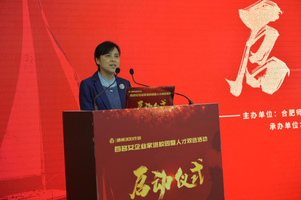 合肥市政府副市长赵明作了精彩的讲话,她指出:人才是强市之基、转型之要、活力之源。本次“扬帆300行动”,对畅通高校、企业链接渠道,加速构建产学研用的创新格局,深入推动合肥乃至安徽科技创新成果转化落地,都具有十分重要作用,希望校企合作秉承“应社会所需,与市场接轨,与企业合作,实践与理论相结合”的全新理念,为教育行业发展带来一片春天!希望同学们以优秀的女性代表为榜样,通过奋斗成就自己的人生理想,以真才实学服务人民,以创新创造贡献国家!