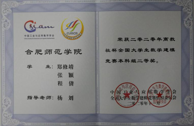 全国大学生数学建模竞赛是由教育部高等教育司、中国工业与应用数学学会共同主办的面向全国大学生的课外科技训练活动,是全国高校学科竞赛排行榜列入赛事,安徽省A类大学生学科竞赛,赛事创办于1992年,每年一届,目前已成为全国高校规模最大的基础性学科竞赛,也是世界上规模最大的数学建模竞赛。大赛的目的在于激励学生学习数学的积极性,提高学生建立数学模型和运用计算机技术解决实际问题的综合能力,鼓励广大学生踊跃参加课外科技活动、开拓知识面、培养创造精神及合作意识,推动大学数学教学体系、教学内容和方法的改革。2020年全国大学生数学建模竞赛共有来自全国及美国、英国、马来西亚的1470所院校、45680个队、超过13万名大学生报名参赛。全国一等奖获奖比例为0.7%、二等奖为2.87%。