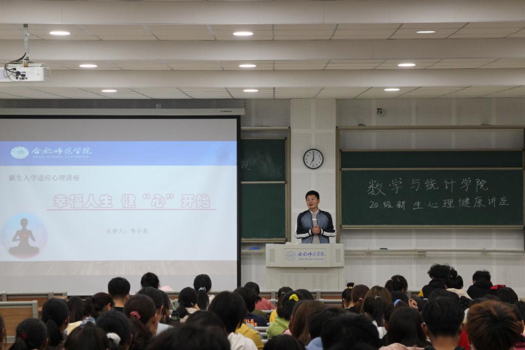 讲座由学生工作处统一安排,由心理健康教育中心老师以及具有心理学专业背景教师主讲。截至目前,在13个二级学院共开展了19场新生入学适应心理讲座。讲座内容丰富、涵盖面广,主题包括“大学生活,你准备好了么?”、“从心开始,乐活合师”、“主动调整心态,适应大学生活”、“大学生朋辈交往”、“幸福人生,‘健’心开始”、“新起点,心健康”等,涉及大学生心理健康、人际交往、生涯规划、情绪调节、心理问题求助途径等贴近大学生活的内容,主讲老师们风格各有特色,现场气氛轻松热烈,赢得了学生们的阵阵掌声。