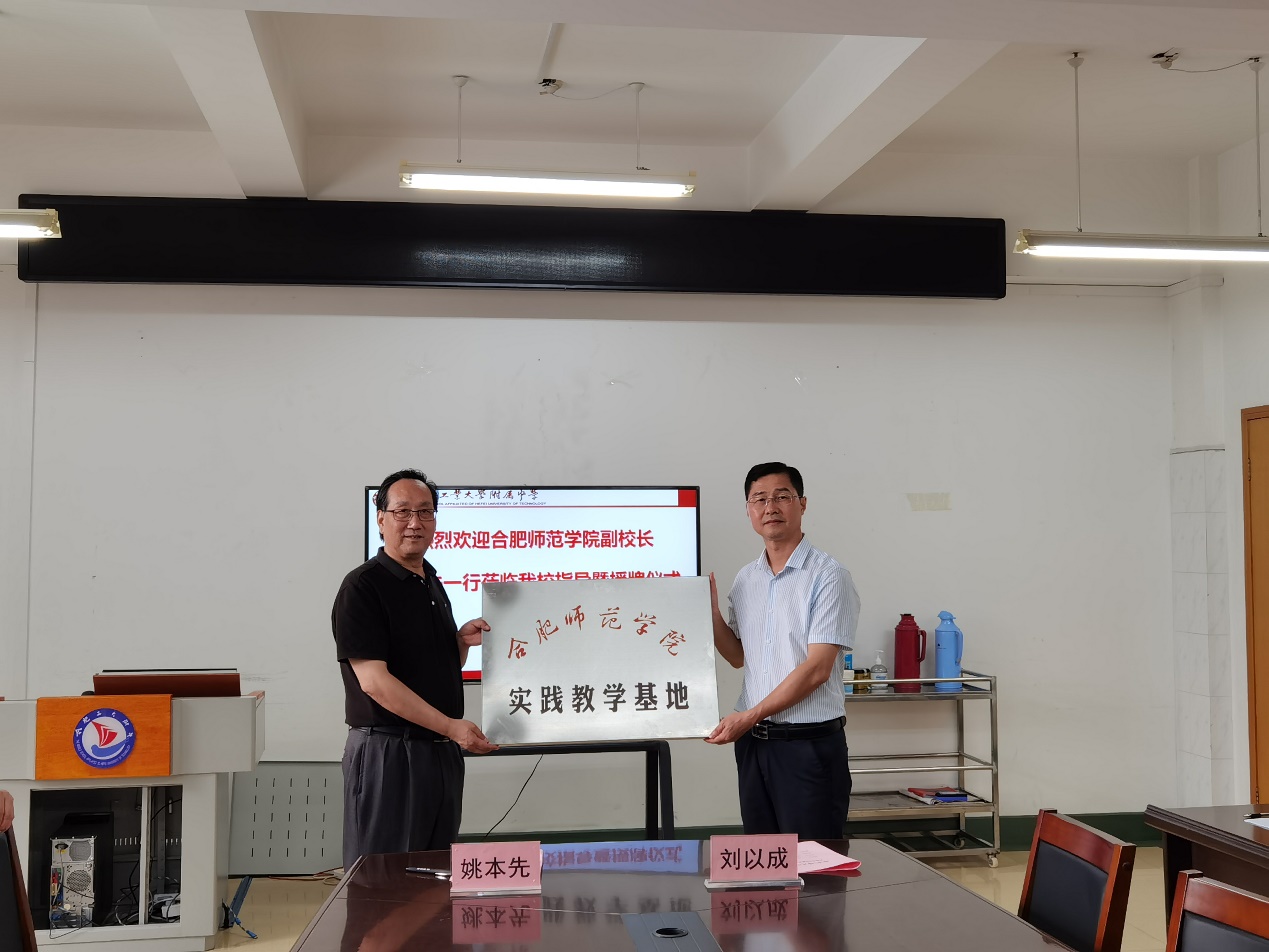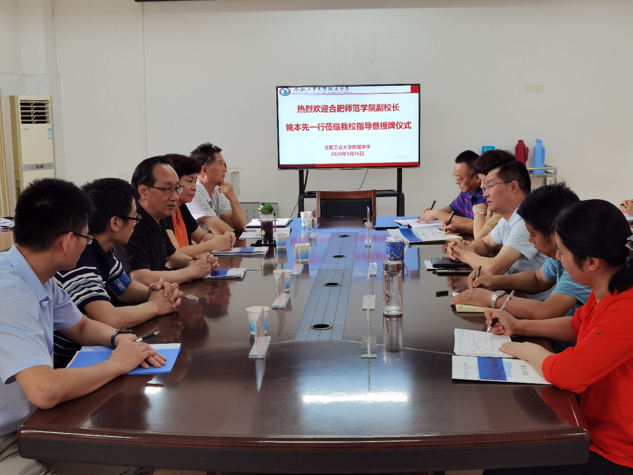 副院长姚本先对实习基地多年以来对我院教育实习工作和人才培养工作的支持与帮助表示衷心的感谢。并提出深度合作的思路:一是推荐更多更优秀的毕业生报考合肥工业大学附属中学的教师岗位;二是互相合作推进各学科专业教学教研,成为重要的教学研合作伙伴;三是深度介入各专业培养人才模式改革,将中小学基础教育改革迫切需求、理念、要求和相应规范融入到师范生的培养方案和教育教学改革;四是请合肥工业大学附属中学对化学专业的国家级认证的教育基地考察给予必要的支持与帮助。