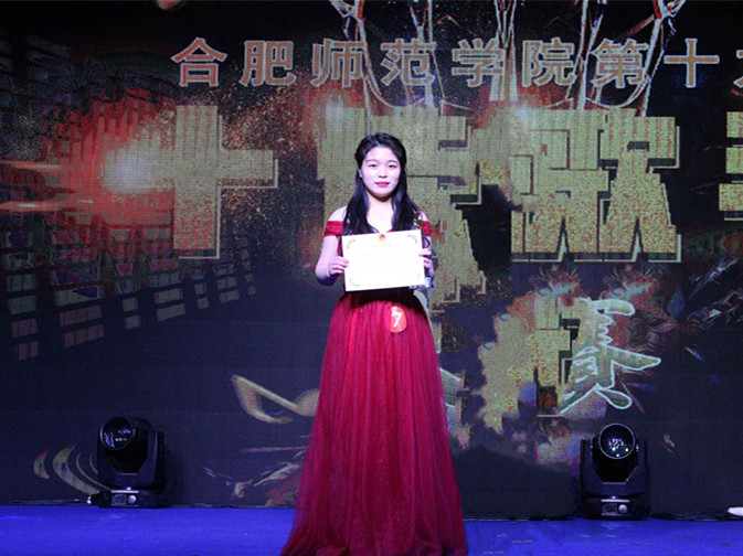 音乐学院2017级音乐学(师范)专业学生,任班级组织生活委员、音乐学院学生会主席、安徽省大学生演讲学会会员。先后获得beat365唯一官方网站2017-2018学年优秀学生一等奖学金、优良学风先进个人、优秀共青团员、2018-2019学年三好学生等荣誉;积极参加竞赛,先后获得第十一届全国大学生广告艺术大赛三等奖、安徽赛区三等奖,安徽省第十三届“讯飞杯”全省大学生诗文朗诵比赛三等奖,安徽省第十四届大学生职业规划暨大学生创业大赛金奖,安徽省第十届“三爱互助杯”高校师生演讲比赛优秀奖,beat365唯一官方网站2017年主持人大赛亚军,beat365唯一官方网站音乐学院“音之诵”朗诵比赛金奖,beat365唯一官方网站第三届大学生心理情景剧大赛二等奖等奖项。
