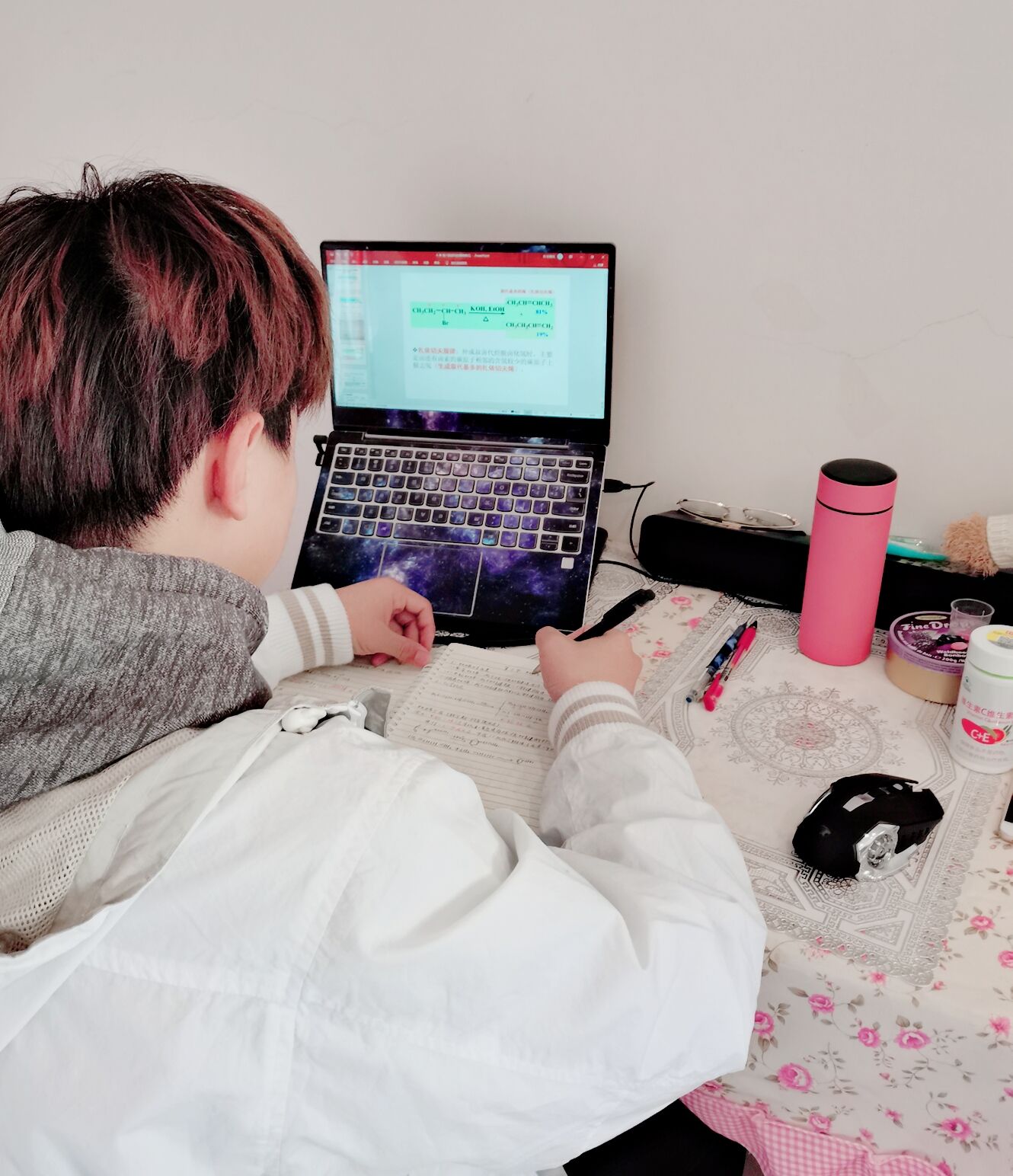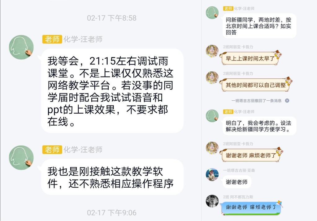 教我们《有机化学》课的汪老师更是在开始上课前几天就开始一次次调试着上课软件,早日熟悉上课时会用到的软件操作。考虑到我们在家没有课本,他不厌其烦地一次次拍下课本照片发到学习群中;班里面有来自新疆的同学,老师也考虑到了时差问题。汪老师这种尽职尽责的态度,不禁让我想起在抗疫一线的医护人员们。他们无微不至地照顾病人,只为了能让病人在这个特殊时期也能感受到人间温暖。