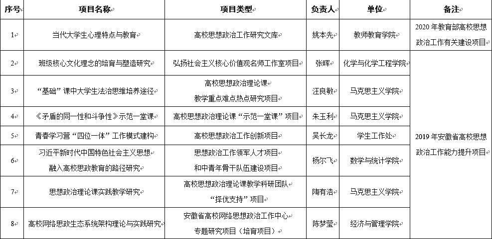 我院获批教育部和安徽省有关高校思想政治工作项目名单