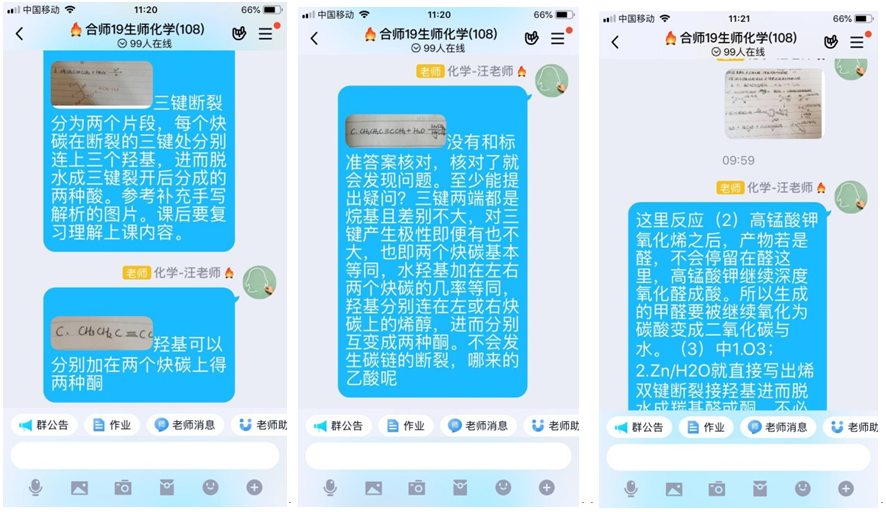 接到学校在线教学的通知,我就开始了思考,怎样把隔空教学变得更生动,让疫情期间居家的孩子们主动学习,能收获更多的东西。在线教学过程中,教师的权威性和吸引力下降,不可能像传统课堂那样对学生的学习进行监督把控,必须对课堂教学的过程进行再造。不过,这对于到退休年龄的我来说,“雨课堂”、“QQ直播群”还是陌生的。针对平台操作陌生这一事实,我知道不懂就要问。我积极请教本系其他老师,探讨问题出现的原因,研究并解决了教学过程中出现的小问题,感到很高兴。同时,又考虑到直播授课可能受网速、设备的影响,加之部分学生地处偏远,担心影响学生的学习效果。最终,经过一番摸索与训练,学会了QQ直播间的应用。