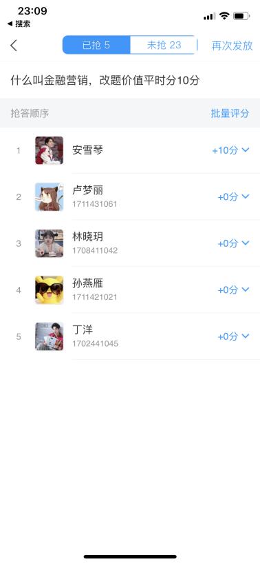 要解决这些问题,一个简单的做法是对学生的学习成果考核评价,教师在开展线上教学时制定有效的学生考评计划,不仅能准确评估学生的学习情况,而且还能为教学改进,促进学生学习提供帮助。这种考评分为两类,一类叫形成性评价,一类叫总结性评价。总结性评价通常是正式的考试,而形成性评价是教师为了解学生学习状况,在教学过程中开展的非正式考评,目的是提高学生学习质量,有时并不作为学业最终成绩的依据。比如我在直播过程中会设置抢答环节,在直播课后会设置讨论环节。抢答给分,而讨论并不直接给分。学生们的答题热情还是很高涨的。这些既能作为学生参与学习的证据,也能体现他们学业方面的进步。评价结果及时也能让学生对自己的学习成效有更清晰的认识。