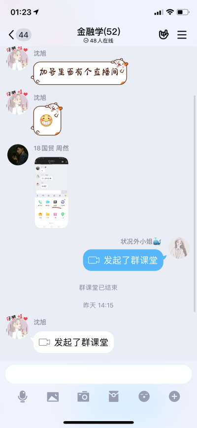 在我亲身实践线上教学之前,我对在线学习的印象就是每个学生“单打独斗”,“各自为政”。但当我把线下分组讨论搬到线上,发现小组讨论能在一定程度上帮助学生减轻在线学习的孤立感,并让学生在相互支持中提升学习参与度和积极性,首先我先将学生按人数分组,采取自由组合,确定后分小组发布下节课的讨论主题,该组同学有一周的准备时间,然后推选一人作为主播,进行直播演示,可以辅助ppt等工具。比如18国贸总共49人,分为10组。在直播的过程中,由于大家很久没有见面,又相互熟悉,气氛比较轻松,甚至比线下教学的讨论环节还要更热烈一些。
