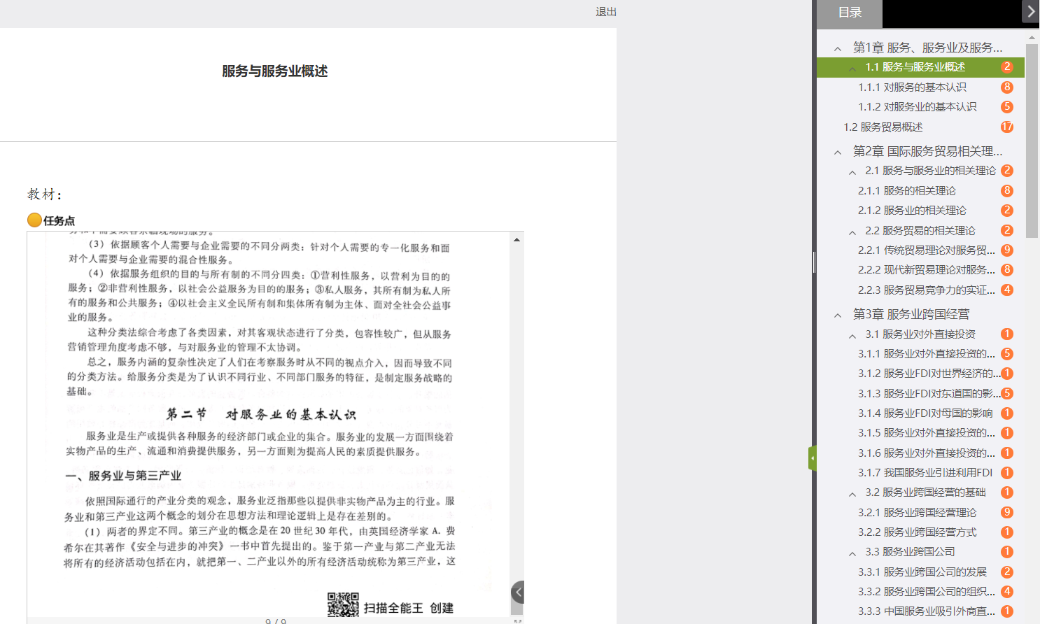 搭建好章节内容,上传了电子版教材之后,接下来就是视频内容的上传。我查找了学堂在线和中国大学MOOC等平台上的内容,发现我所授的课程中只有《国际服务贸易》有相关章节部分的教学视频,但并不完备,我将其下载并上传至相关章节上。而另一门课《国际贸易融资实务与案例》找不到已经搭建好的MOOC内容,所以总体来说两门课都需要我进行录课。