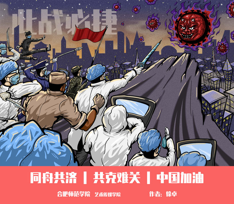 编者按:居家防疫,居家育人,考验着高校教师的政治担当和立德树人初心使命。当前新型冠状病毒感染的肺炎疫情形势依然严峻,艺术传媒学院师生深入学习贯彻习近平总书记重要讲话重要指示批示精神,以“疫情就是命令,防控就是责任”为主题,通过“党支部、任课老师、导师组”三条途径,指导广大学生积极参与到这场“坚决打赢疫情阻击战”社会实践。在实践育人行动中,艺术传媒学院以导师组为主,美术学、产品、动画、服装与服饰设计、环境艺术设计、视觉传达设计六个专业组织了26多位导师,指导学生创作了绘画、书法、篆刻、招贴、插画等形式的艺术创作150余幅作品。现将这些作品整理摘编,分为上下篇陆续发布,供大家学习参考。
