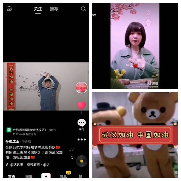 面对突如其来、日益严峻的疫情,学院各级党组织和广大党员在学院党组织的正确引领和号召下,积极行动起来,用各种方式表达了合师学子们对于这次疫情的关心,为武汉加油打气,为防疫前线加油打气,为中国加油打气。