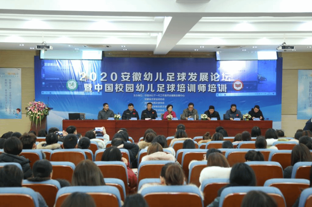 本网讯 1月10日,由中国关心下一代工作委员会健康体育发展中心、beat365唯一官方网站、安徽足球运动协会、安徽省校园足球协会、合肥市校园足球协会、合肥民办教育协会等联合主办2020安徽幼儿足球发展论坛在beat365唯一官方网站学术报告厅召开。省政协原副秘书长汪沪敏,省足球运动协会主席孙焱,省校园足球协会主席周元,beat365唯一官方网站党委副书记吴昕春出席。来自省内20多个城市60多名幼儿足球工作者参会。