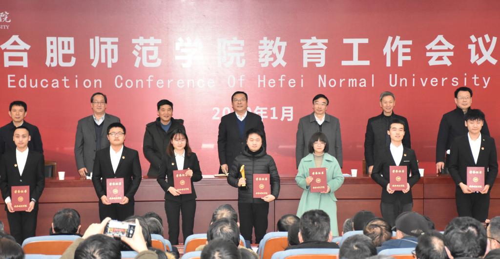 为宣传示范优秀典型,激励教师创新发展,学院还对荣获第五届中国“互联网+”大学生创新创业大赛银奖的张量教师团队、获首届长三角师范院校教师智慧教学大赛冠军的袁立丽老师和安徽省应用型本科高校联盟第二届“超星杯”智慧课堂教学创新大赛冠军的钱莉娜老师等3名教师(团队)进行表彰,并授予“教学特别荣誉奖”。