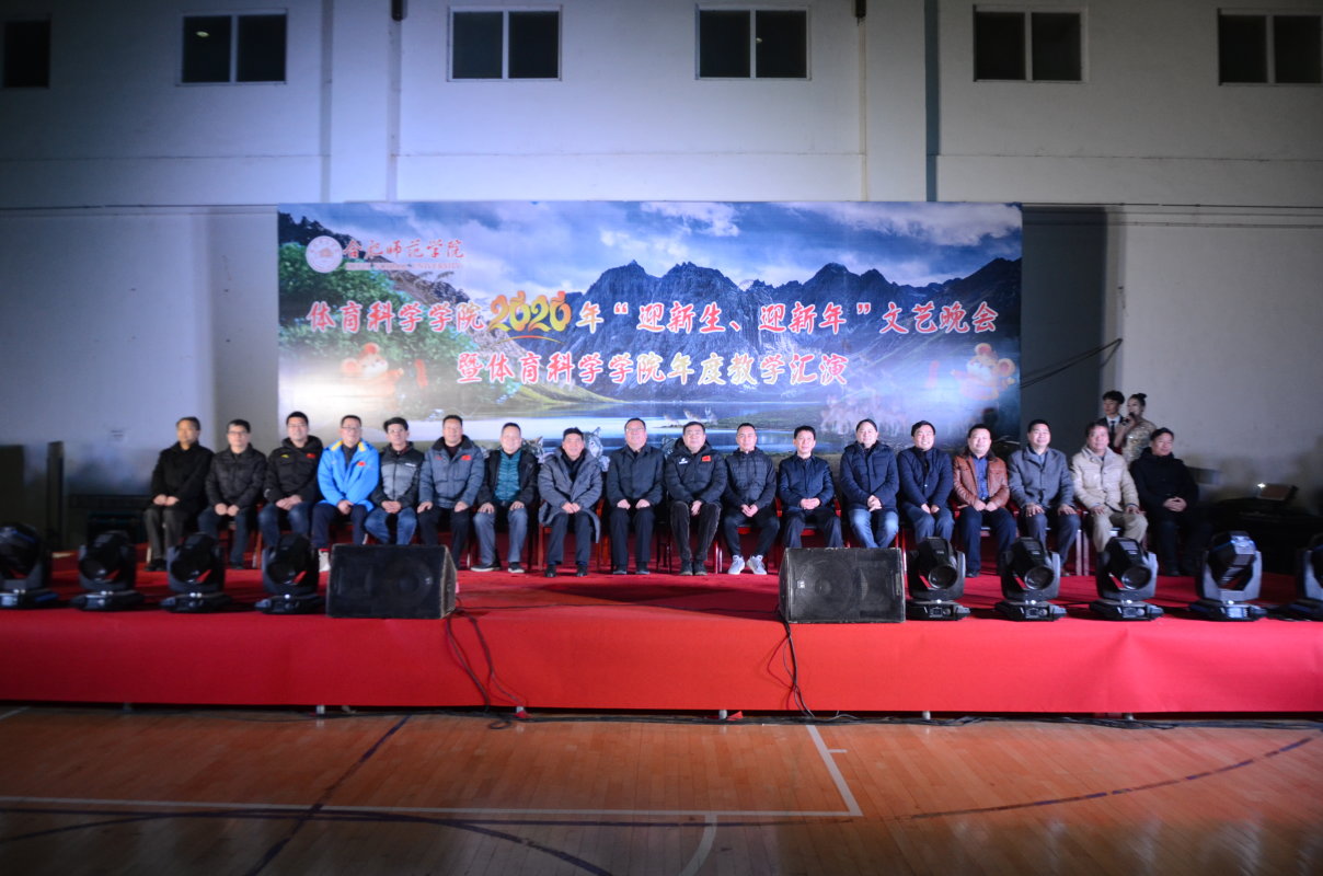 本网讯 12月23日晚,由安徽水上运动管理中心、安徽省田径游泳运动管理中心、安徽省球类运动管理中心、安徽省射击运动管理中心和beat365唯一官方网站体育科学学院联合主办,体育科学学院团委、学生会承办的体育科学学院2020年“迎新生、迎新年”文艺晚会暨年度教学汇演在锦绣校区体育馆隆重举行。党委书记徐成钢,党委副书记吴昕春,党委委员、纪委书记徐文林,安徽水上运动管理中心、安徽省田径游泳运动管理中心、安徽省球类运动管理中心、安徽省射击运动管理中心负责人,学院部分职能部门负责人以及体育科学学院千余名师生欢聚一堂,共享盛宴。