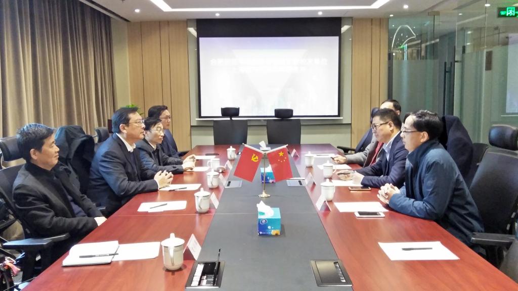 在沪期间,徐成钢、孙道胜一行在凌德祥和方守江的陪同下,还走访调研了校友单位上海融力天闻律师事务所,看望该所副主任潘定春校友,现场分享了他毕业二十年来在上海艰苦打拼、立足扎根的创业经历,卓越的事业成就以及未来的发展规划。该所位于上海浦东地标性建筑金茂大厦内,目前位居上海律师事务所第20名、全国律师事务所第100名,曾荣获上海市文明单位称号。徐成钢称赞潘定春校友能吃苦、有思想、有情怀、有担当,不仅个人事业发展得非常好,而且热心校友工作、无私奉献,在团结凝聚上海校友,促进校友事业成长、母校建设发展上做出了较大的贡献,不愧为母校的杰出校友。(发展规划处(校友办))