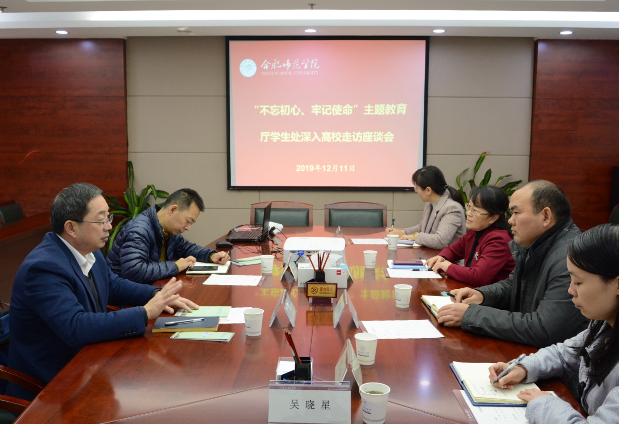 本网讯 12月11日上午,省教育厅高校学生处处长陈锋、主任科员黄兵等一行来我院就毕业生就业创业和大学生心理健康教育等工作开展专题调研,党委副书记吴昕春在锦绣校区行知楼亲切会见了陈锋一行,就业创业工作处、学生工作处主要负责同志和相关工作人员参加了座谈会。