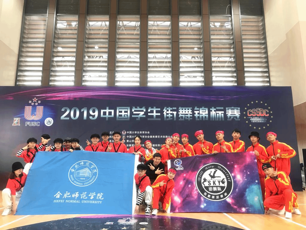 本网讯 近日,由中国大学生体育协会主办、中国大学生体育协会健美操艺术体操分会执行,黄山学院承办的2019中国学生街舞锦标赛在黄山学院落幕。共有来自全国49所院校的800多名学生参加了全国大学生街舞推广套路推广套路、原创综合风格齐舞、个人项目斗舞等三个组别的比赛。我院学子获得1金1银1铜的好成绩。