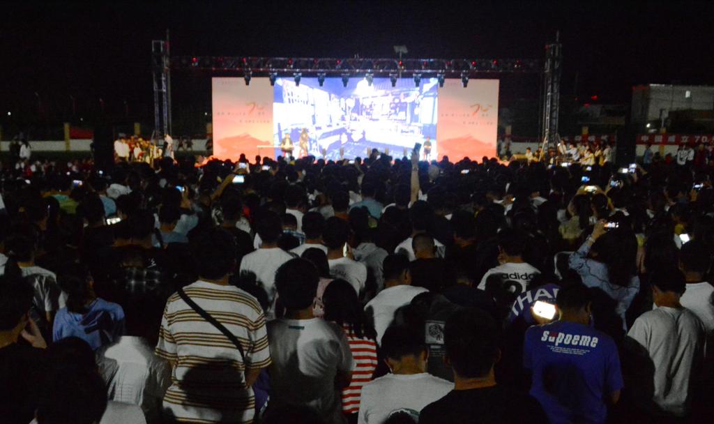 本网讯  9月25日晚,由院团委主办,学生社团联合会承办的庆祝新中国成立70周年暨2019年迎新生文艺晚会于滨湖校区体育场隆重举行。学生工作处、教务处、保卫处、后勤处、滨湖校区综合管理办公室、院团委等单位人员、2019级新生辅导员、近3000名2019级新同学到场观看晚会。