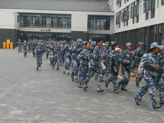 第二阶段,下午15:00,演练活动随着疏散指令哨声发出,参加军训的各连学生在教官的指挥下,弯着腰,用手帕、毛巾等捂住口鼻,沿安全通道快速、有序地撤离至空旷安全地带。新生同学们听从指挥、动作敏捷,做到了安全、迅速、有序撤离。在活动中无任何踩踏事件,无一人受伤。