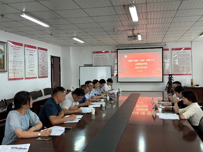 本网讯 7月26日下午,通威太阳能(合肥)有限公司来我院就校企合作事宜进行交流。通威太阳能(合肥)有限公司人力资源部经理张静子、招聘经理李浩伟、培训经理徐璐,物理与材料工程学院党政班子及相关专业负责老师参加座谈会。会议由物理与材料工程学院副院长訾振发主持。
