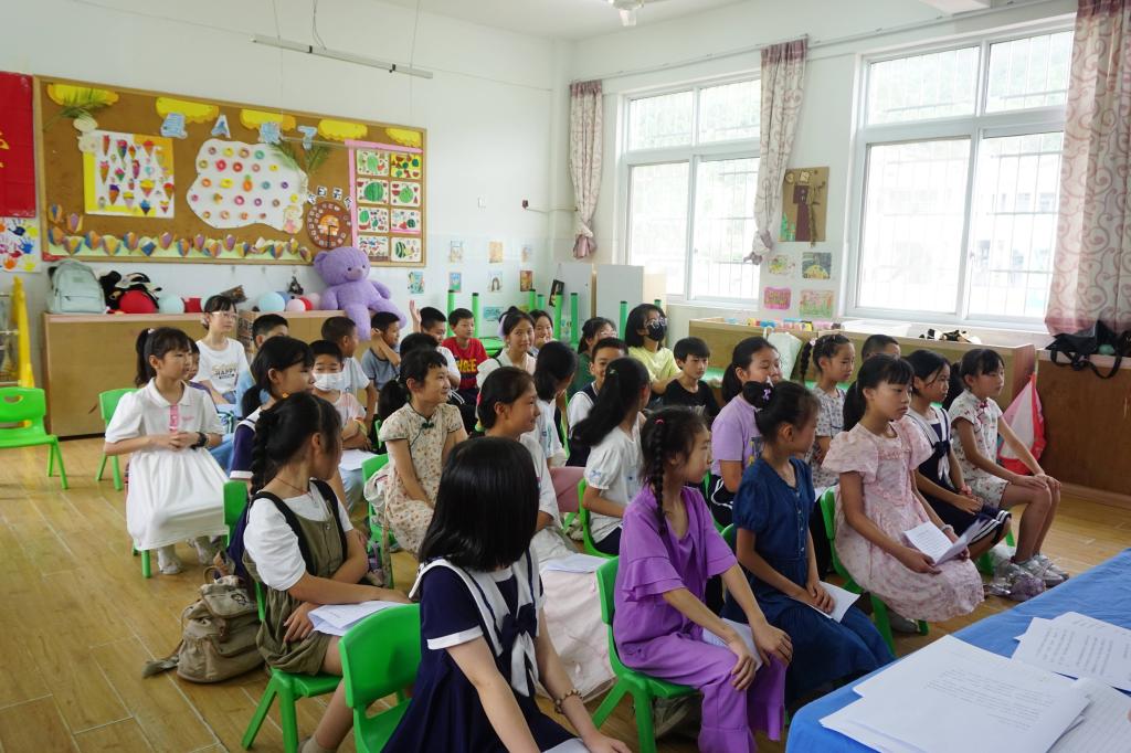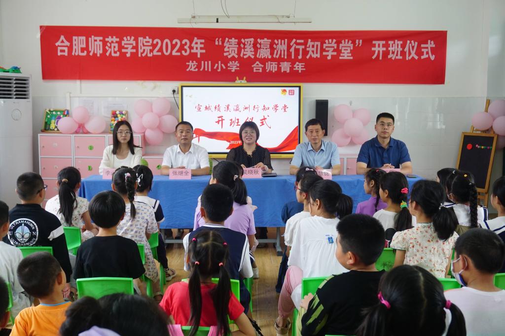 本网讯 7月4日上午,院团委绩溪瀛洲行知学堂于宣城市绩溪县瀛州中心小学(龙川小学)顺利开班。瀛洲中心小学校长吴晓秋、副校长张继全、党委副书记汪慧铭,我院团委教师、学堂指导教师王露,11名“小先生”及40余名小学员参加开班仪式。