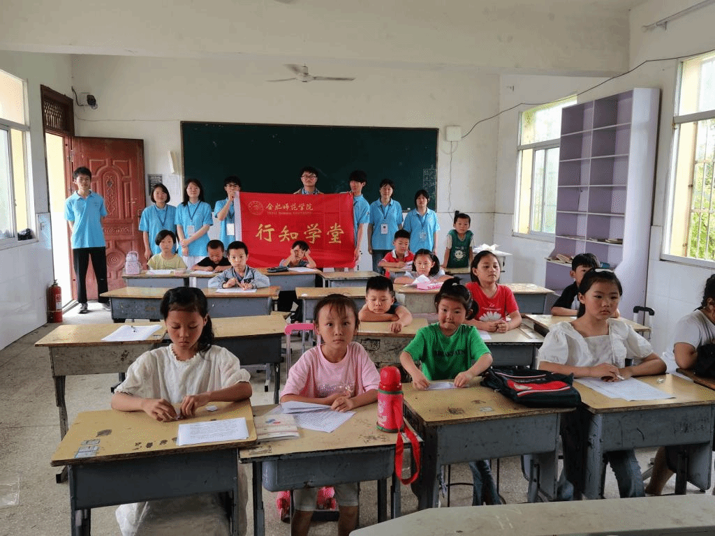 本网讯 7月3日,教育与心理科学学院“利辛王市行知学堂”在亳州市利辛县王市中王小学正式启动。来自教育与心理科学学院、文学院、电子信息与集成电路学院、经济与管理学院、美术与设计学院的10名“小先生”以及全体小学员共同参加开班仪式。