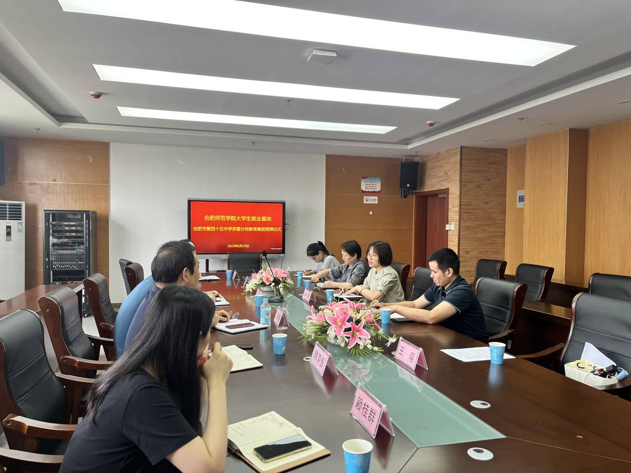 会后,学院与合肥四十六中、合肥四十五中芙蓉分校南校区举行共建就业基地签约和授牌仪式,刘艳代表学院与合肥四十六中、合肥四十五中芙蓉分校南校区签订了就业基地协议。