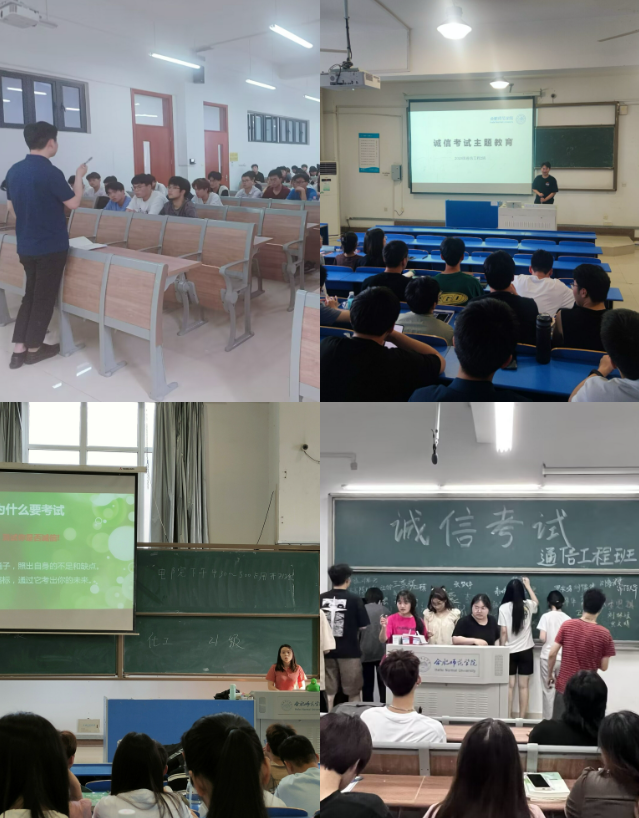 本网讯 为严肃考风考纪,加强青年大学生诚信教育,引导学生做社会主义核心价值观的坚定信仰者、积极传播者和模范践行者。6月12日—6月16日,电子信息与集成电路学院在各年级各班级组织开展了“自信迎考 诚信应考”诚信考试主题班会。