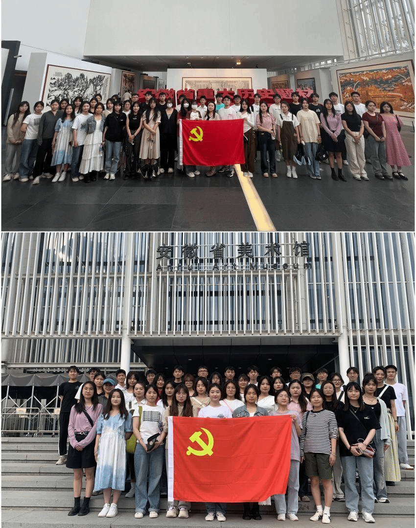 本网讯 为深入学习贯彻习近平新时代中国特色社会主义思想,激励引导师生党员从党的光辉历史和红色根脉中汲取奋进力量,6月14日下午,美术与设计学院党委组织师生党员前往渡江战役纪念馆、安徽省美术馆开展党性教育活动。