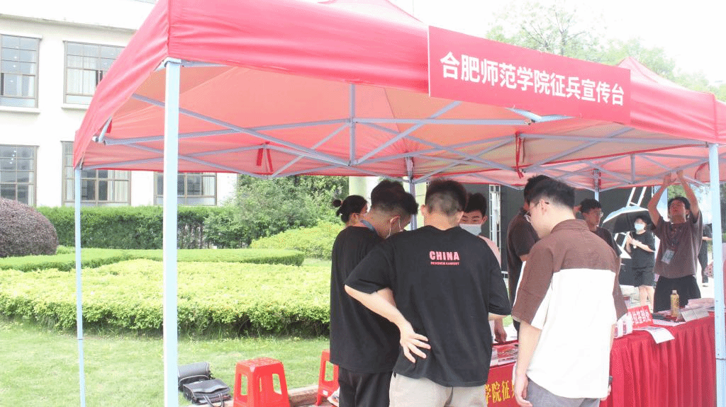 5月31日下午,安徽省2023届高校毕业生暖心服务专场招聘会在锦绣校区博约楼广场举行,学生工作部、人武部在招聘会现场搭建征兵宣传台,为前往招聘会的在校生发放征兵宣传工作手册,对应征入伍的政策开展宣传与咨询,围绕大学生普遍关心的当前国防建设与军队建设对高素质人才的需求、适龄青年积极应征入伍、履行兵役义务的必要性、大学生当兵的优势等问题为现场咨询的大学生答疑解惑,鼓励应届的优秀大学生应征入伍,充实国防力量。