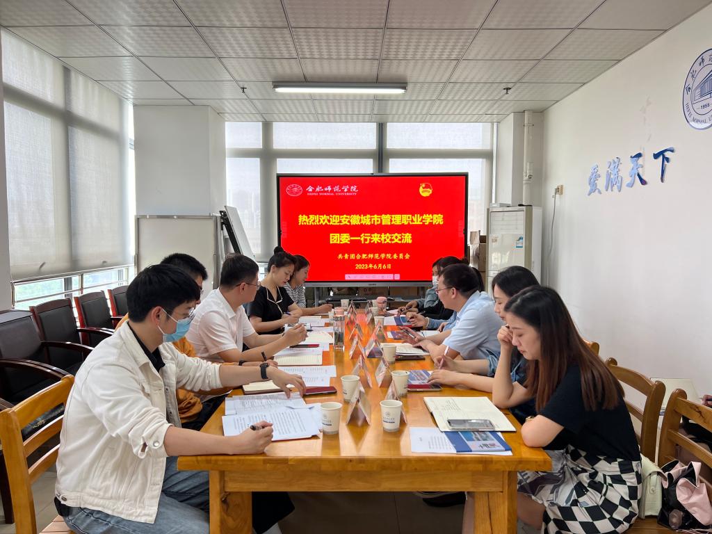 院团委相关同志介绍学院“行知学堂”品牌、校园文化、新媒体阵地建设等情况,安徽城市管理职业学院团委相关同志介绍学生团体管理、暑期社会实践等工作典型做法。双方就共青团评优激励体系建设、学生团体管理、学生活动打造、校园文化建设、志愿服务体系建设、学生社团管理等内容进行深入交流。