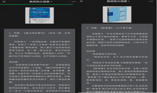 活动中开展了感想征集活动,它以“倾听心声”为主题,借助微信公众号、QQ公众号等线上平台进行阅读感想征集,同学们通过写下自己的阅读感想和心路历程来表达自己内心的感受,敞开郁积的心扉,释放心灵的重负,找到内心的平静。截至目前,此次活动共征集优秀感想45份。