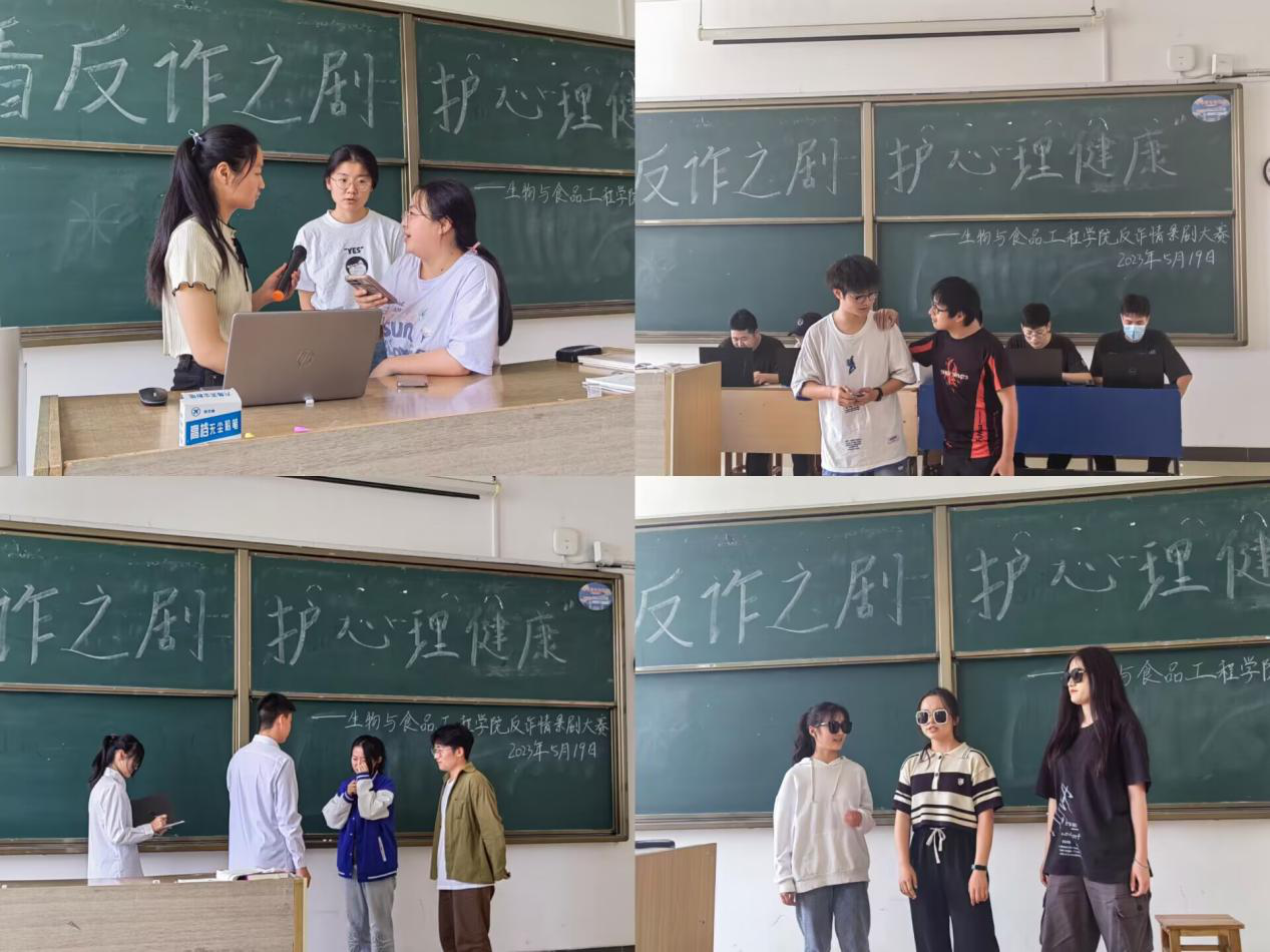 本网讯 为推进反诈意识入脑入心,进一步加强大学生心理健康教育,营造健康向上的校园氛围,发掘学生的创作能力,生物与食品工程学院于5月19日在博约楼101教室举办了以“反诈之剧,护心理健康”为主题的反诈心理情景剧大赛。本次比赛由生物与食品工程学院党委副书记杨娜,院分团委书记黄洁、辅导员杨帆、高欢和张瑜婷担任评委。