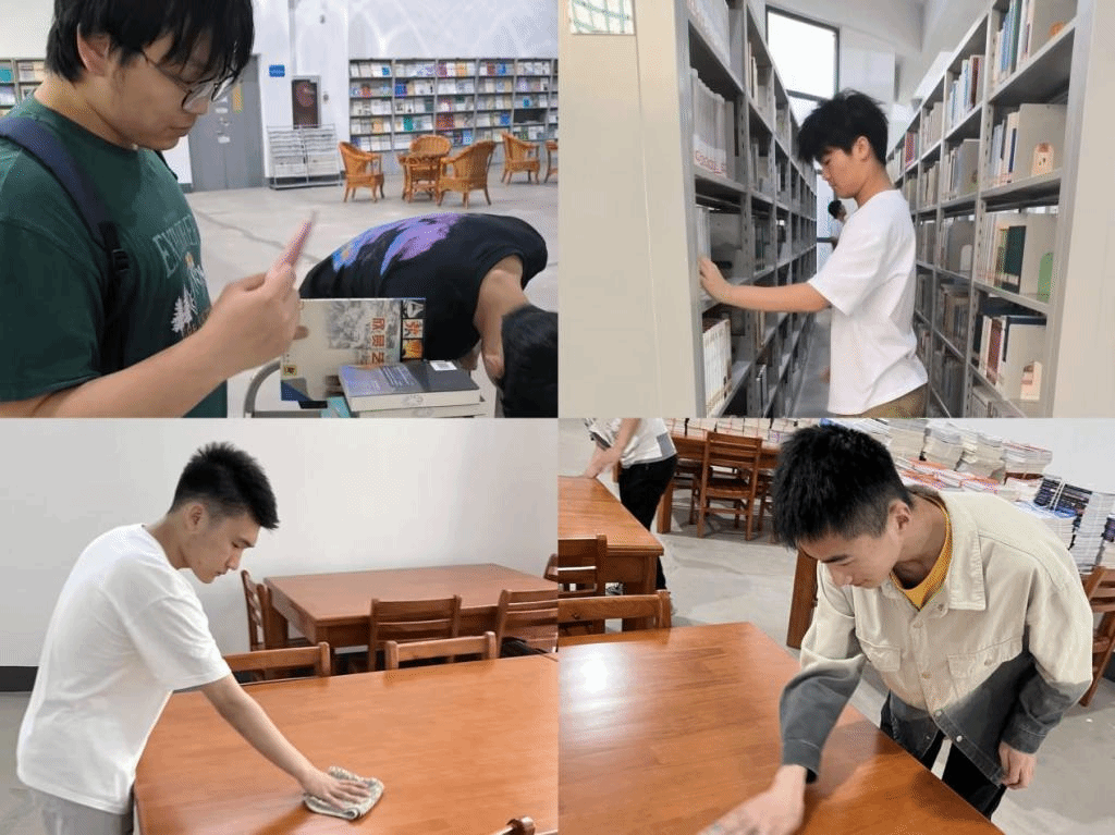 同学们投身校园除草、实验室和教室清扫活动。在劳动中,学生们热情高涨,踏实认真,清理了绿化带的垃圾、干枯树枝,杂草,打扫了实验室和教室的门窗、地面、桌椅等。此外,同学们还分批次前往滨湖校区图书馆,协助图书管理员进行书籍整理志愿服务。了解完基本工作要求后,同学们通过编号对书籍进行归类,将其摆放在对应的书架上,实现了图书摆放井然有序。