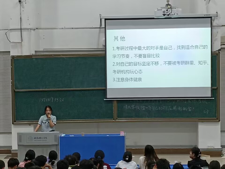 考取中国药科大学硕士研究生的郭欣悦,讲述了专业课的重要性,向同学们讲解了考研从准备到复试各个阶段的任务和重点。