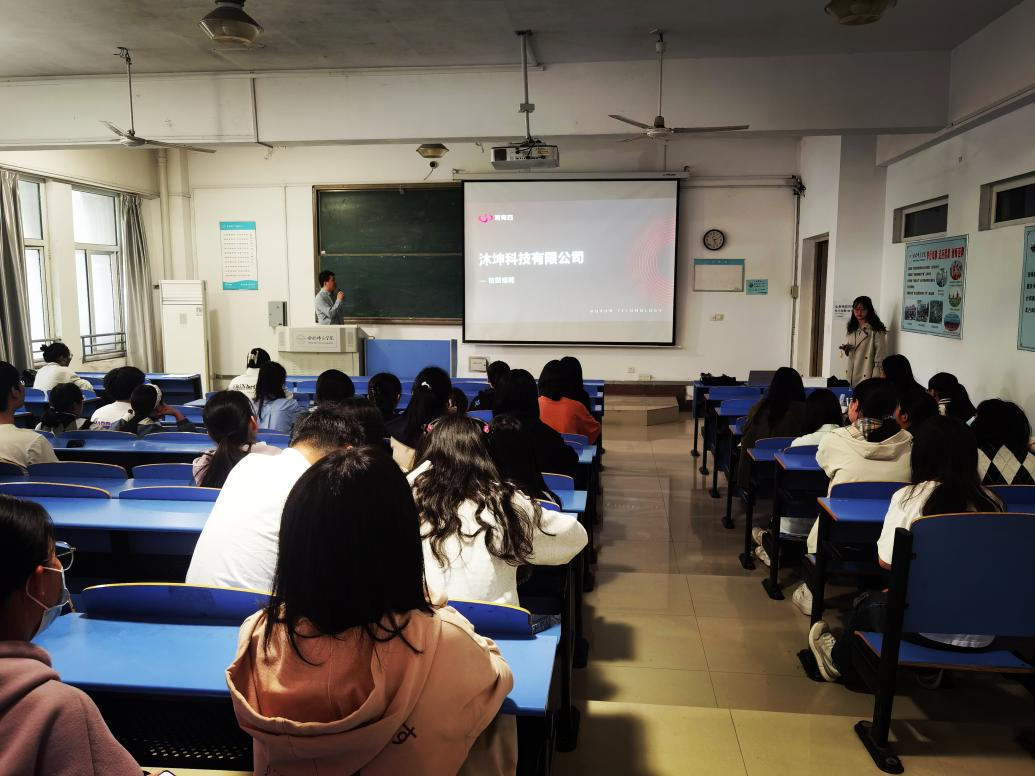 本网讯 为充分发挥学院招聘会在促进毕业生就业的主渠道作用,积极提供就业岗位,促进学生尽快就业。5月10日下午,数学与统计学院在逸夫楼A105举办沐坤科技有限公司专场招聘会,2023届部分毕业生参加招聘会。