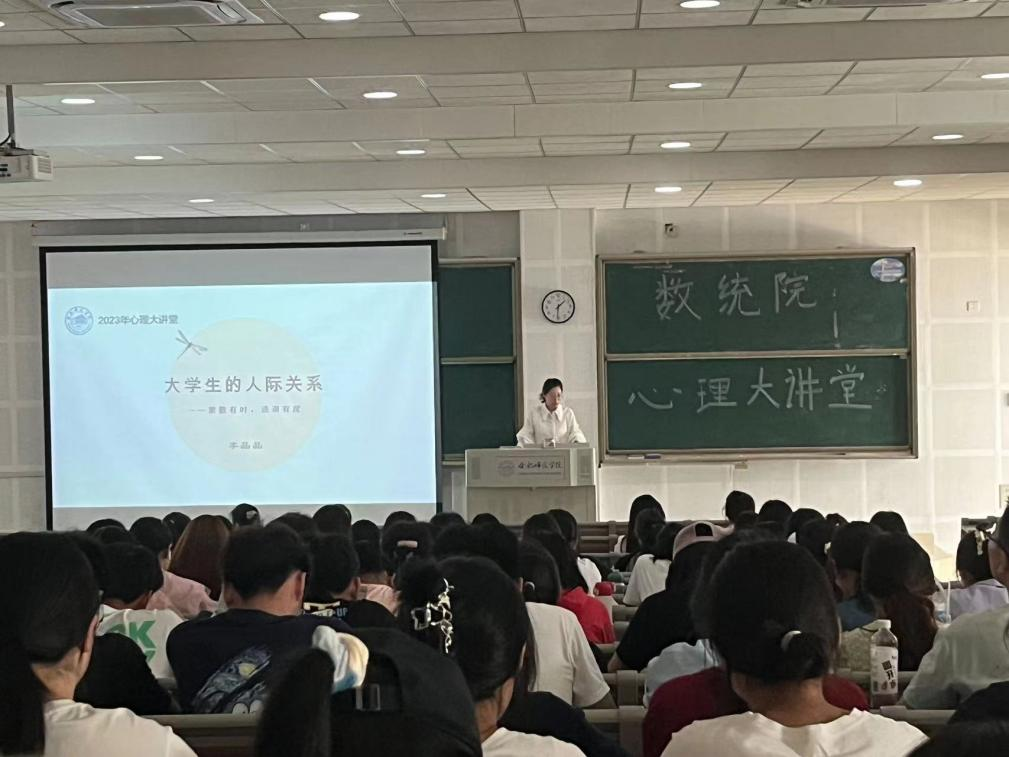 本网讯 为帮助学生更好地处理人际关系,提高学生心理健康水平。数学与统计学院于5月14日下午在博学楼A108教室举办以“大学生的人际关系”为主题的心理大讲堂活动。活动邀请学生工作处李晶晶老师主讲,2022级全体学生参与。